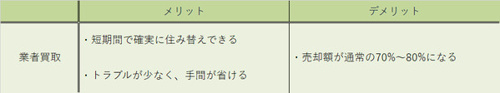 一般の人ではなく不動産業者に買い取ってもらうため、トラブルが少なく、短期間で確実に売却できることが特徴です。