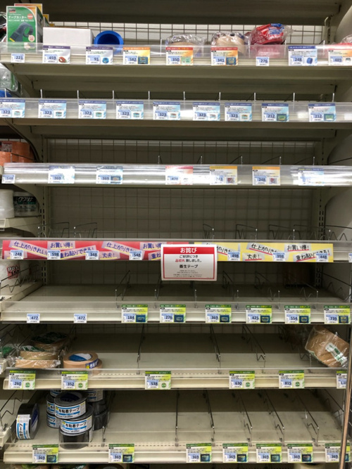 カセットコンロや粘着テープ、乾電池など、売り切れのお店も多いようです。